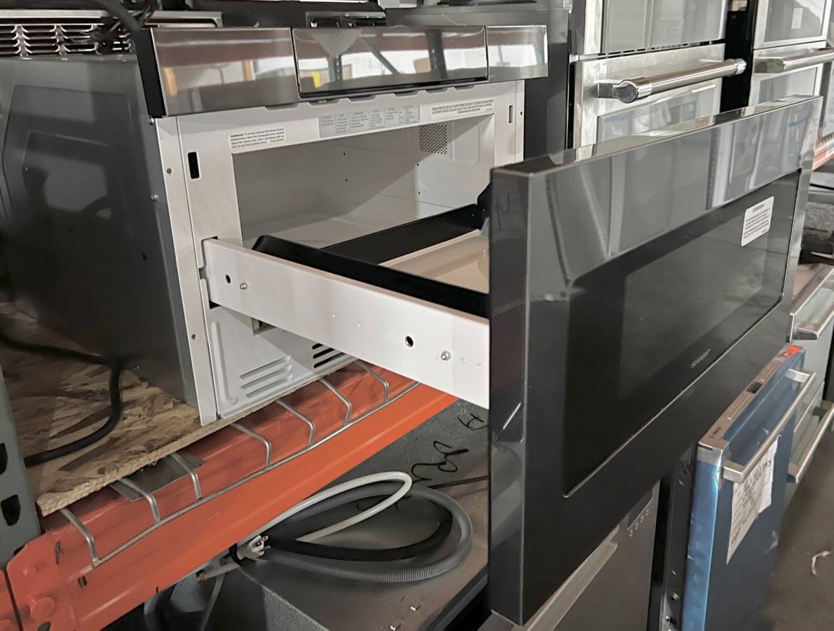 24 Inch Microwave Drawer SMD2470AH Sharp Black Stainless Steel * New Open Box Easy Touch, Hidden Control Panel, Sensor Cook, Design Flexibility, Timer, 1,000 Watts, 1.2 cu. ft. Capacity, Reheat Keep Warm