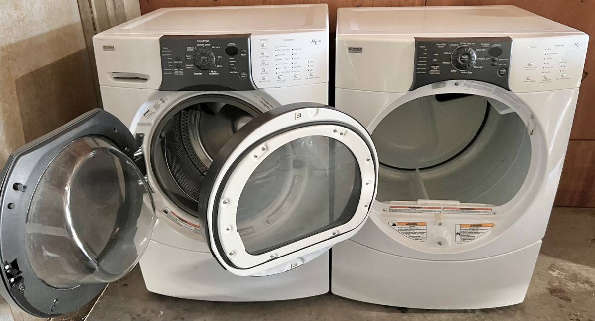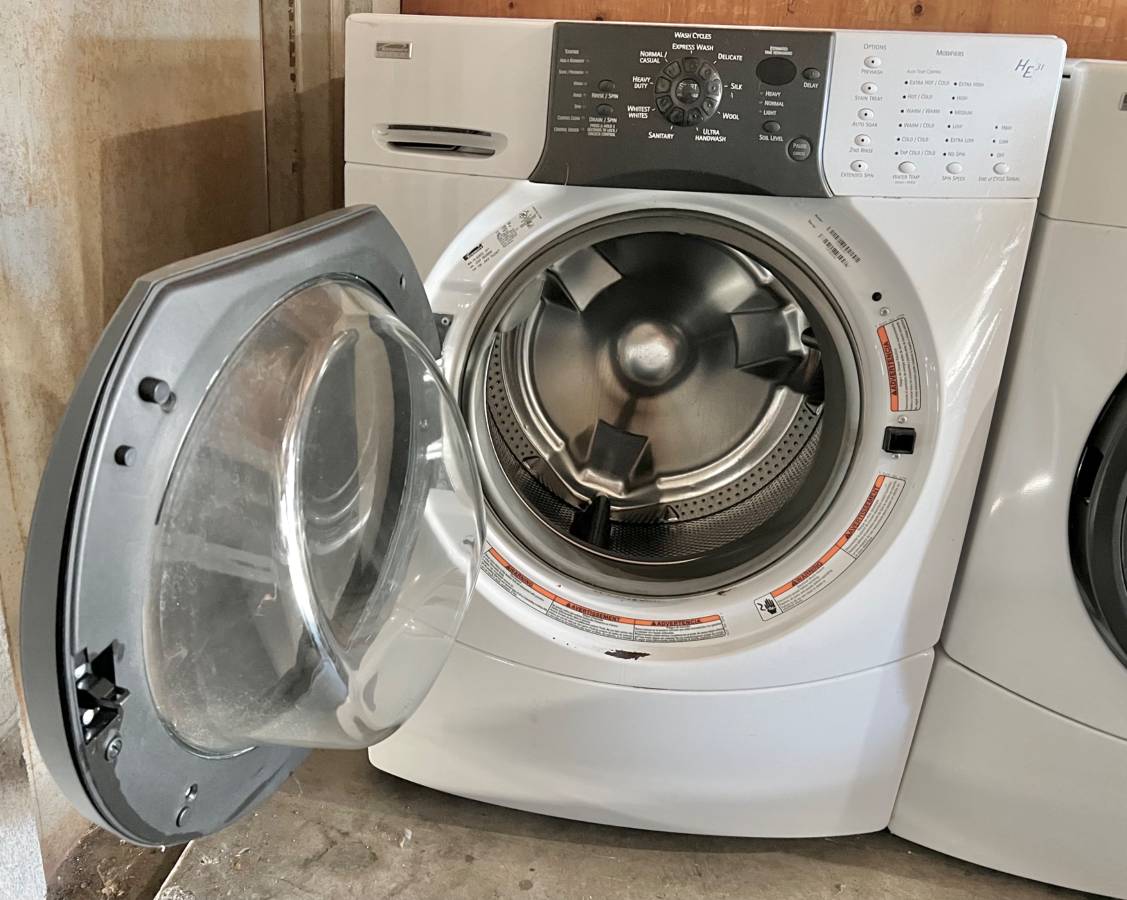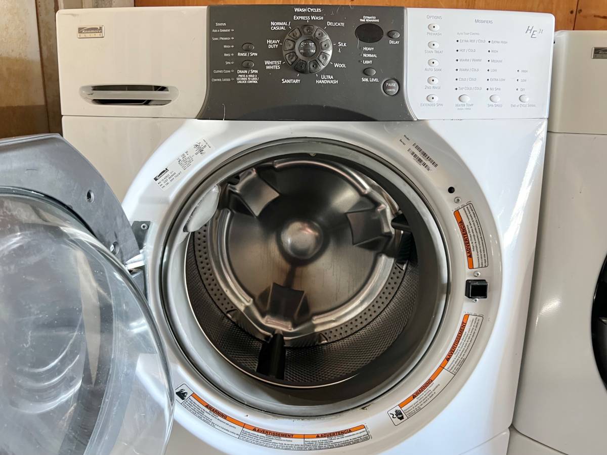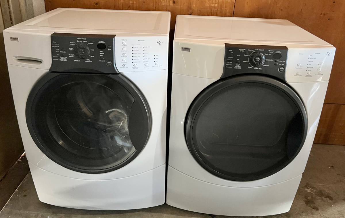27 Inch Kenmore Elite Front Load Washer Gas Dryer Set , White Used Condition