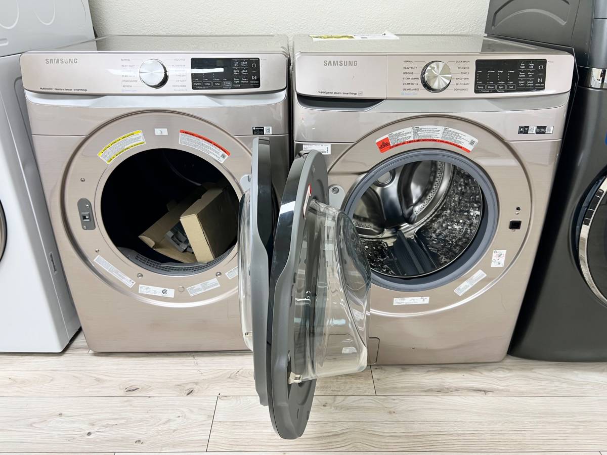 27 INCH Samsung Washer WF45B6300AC DVG45B6300C * New Open Box * Smart Front Load Washer 4.5 Cu. Ft., Sanitize, Gas Dryer 7.5 Cu.Ft., 21 Dryer Programs, Steam , ADA, Energy Star, Champagne
