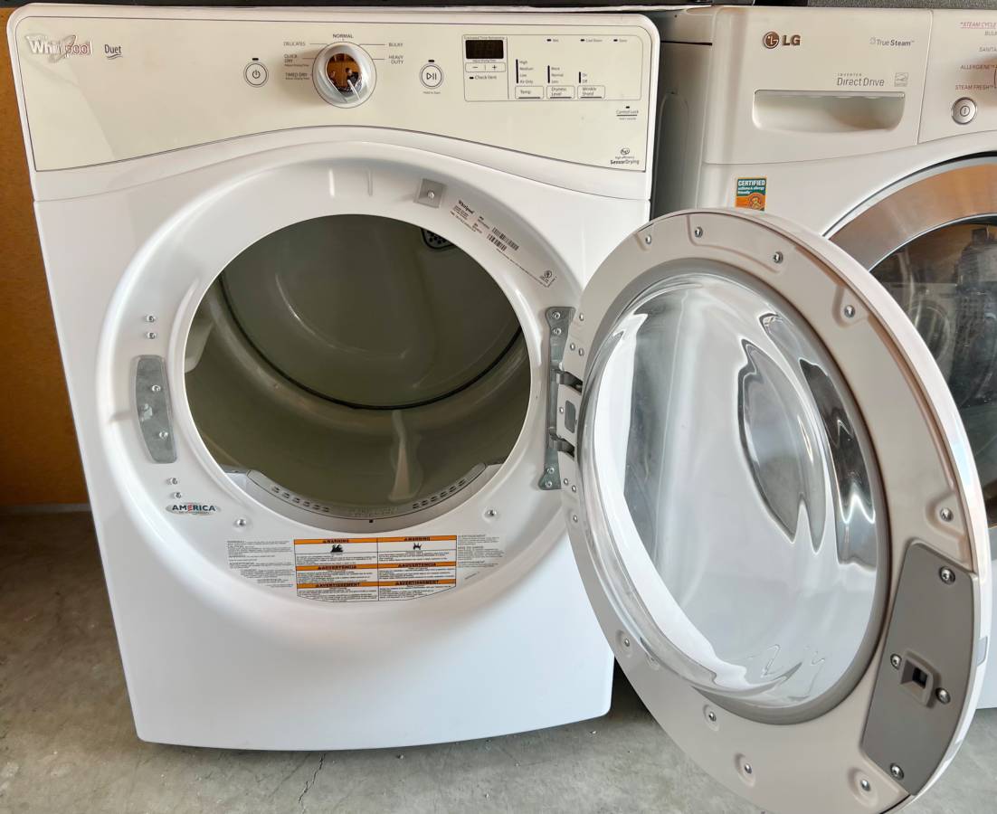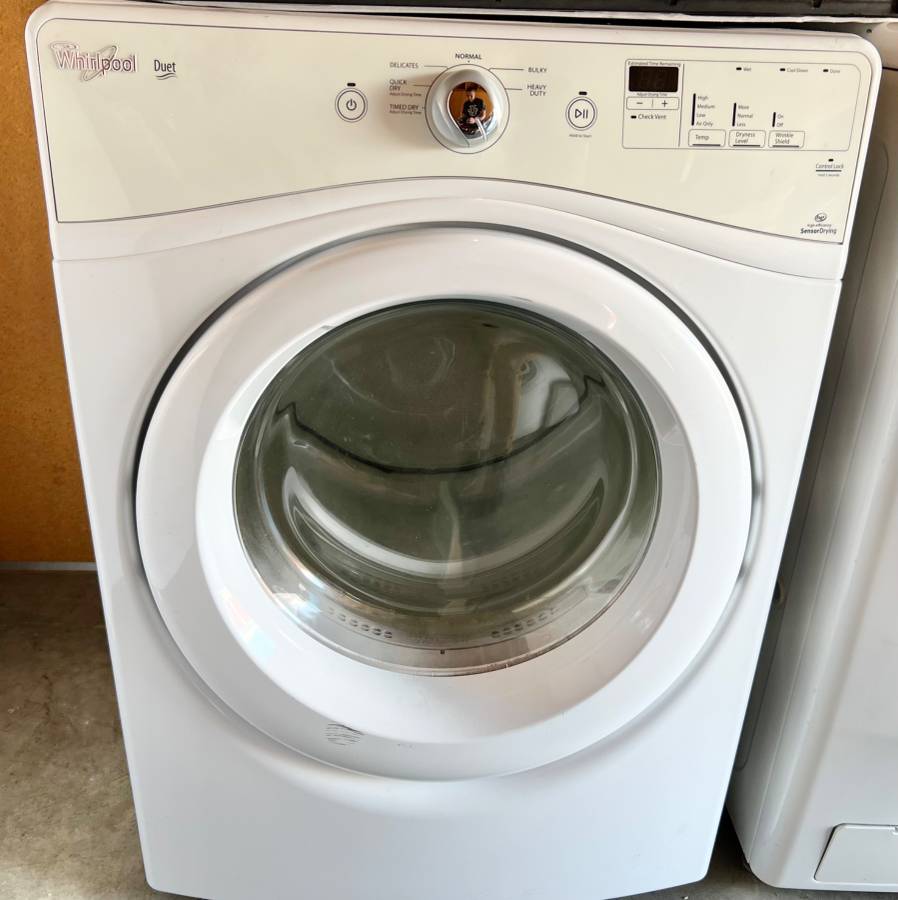 27 INCH Whirlpool Duet WED70HEBW Electric Dryer 7.4 cu. ft. White , Used Condition , LED , Wrinkle Shield , Quad Baffles, ADA , 30 AMP , 60Hz, 240V