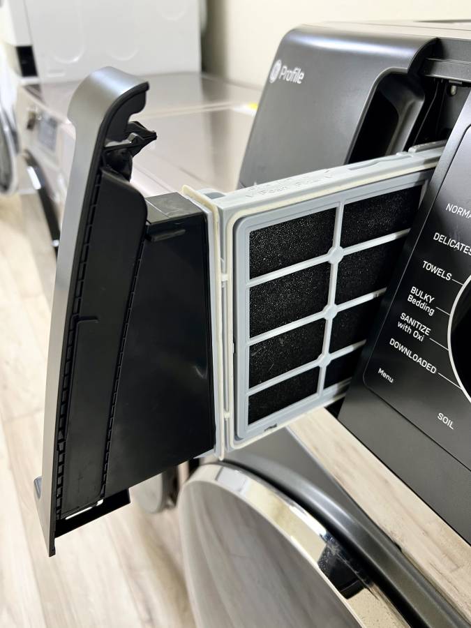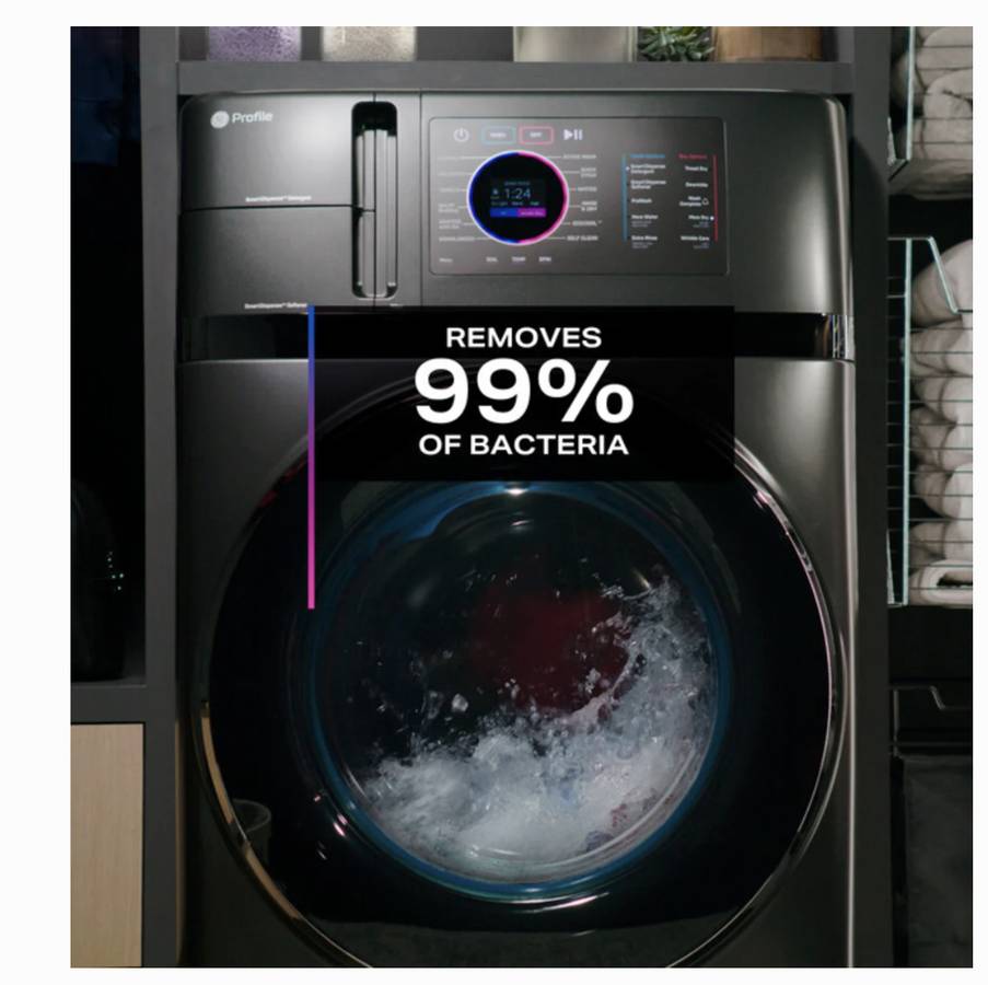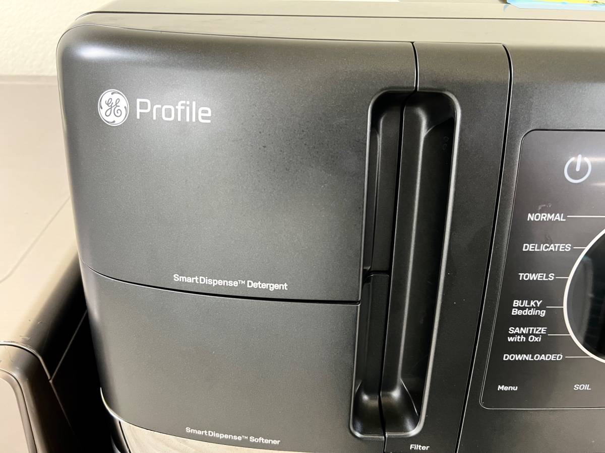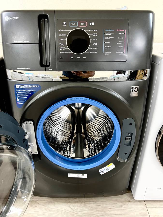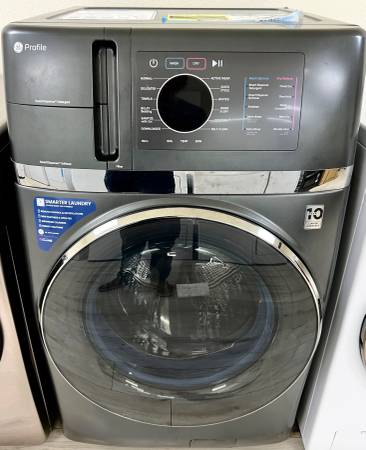 28 INCH GE Profile PFQ97HSPVDS Front Load Washer Dryer Combo * NEW ** 4.8 Cu Ft , Energy Star , Ventless Heat Pump Dryer, 110V outlet, ADA, Carbon Graphite.