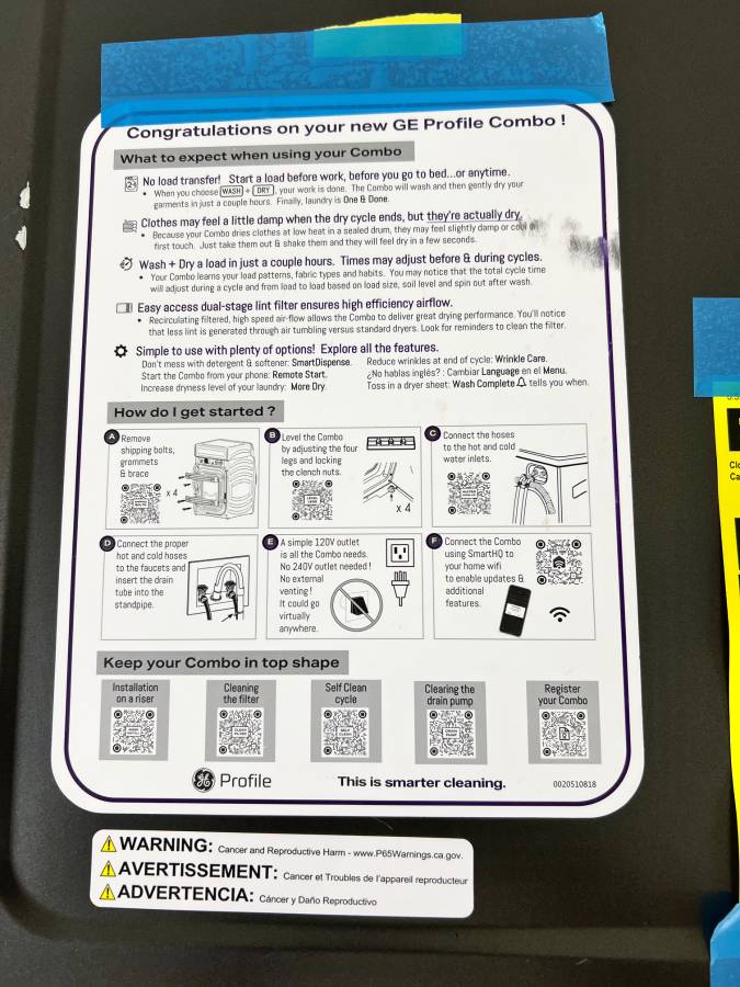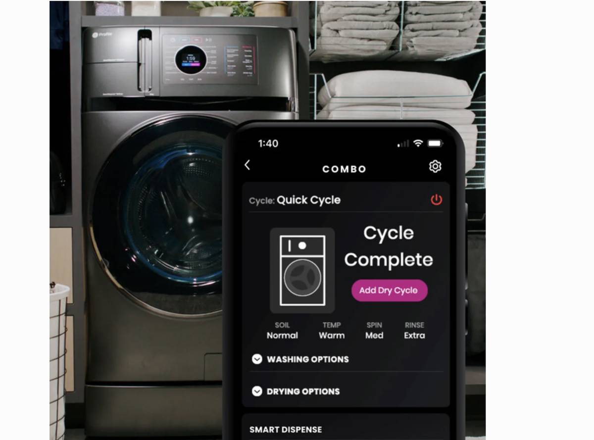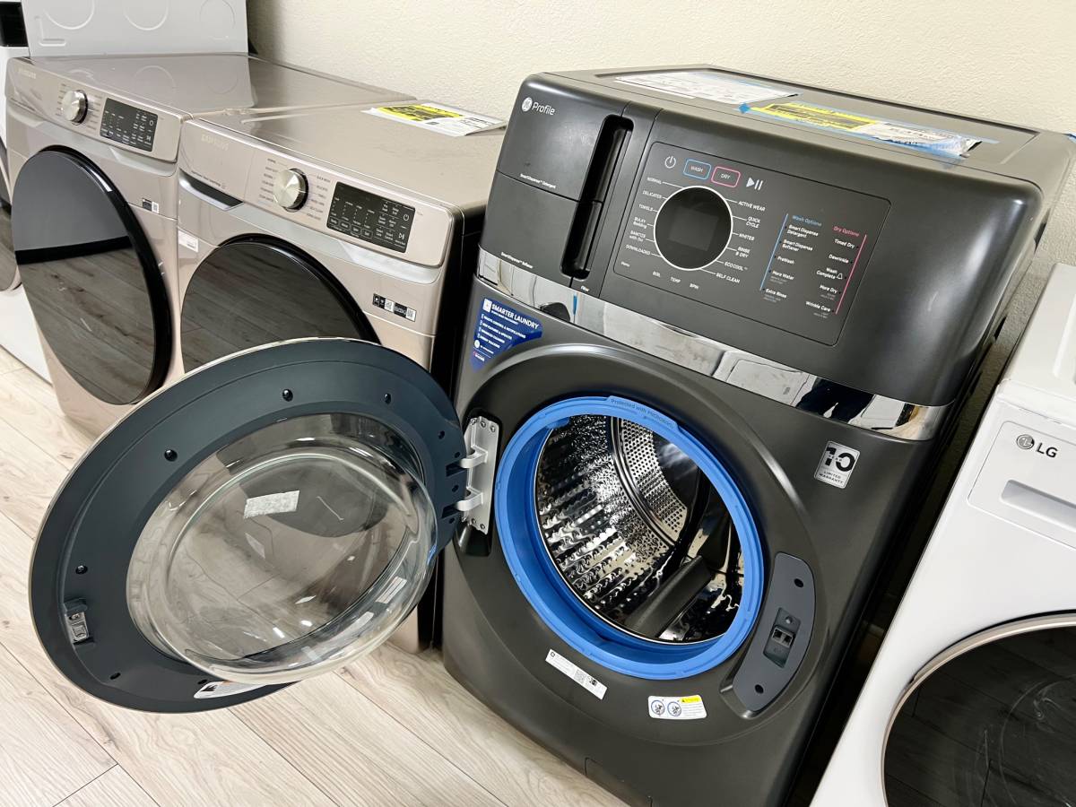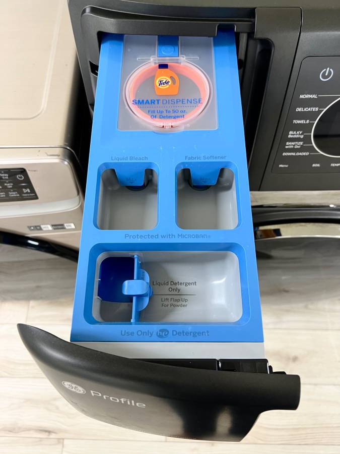 28 INCH GE Profile PFQ97HSPVDS Front Load Washer Dryer Combo * NEW ** 4.8 Cu Ft , Energy Star , Ventless Heat Pump Dryer, 110V outlet, ADA, Carbon Graphite.