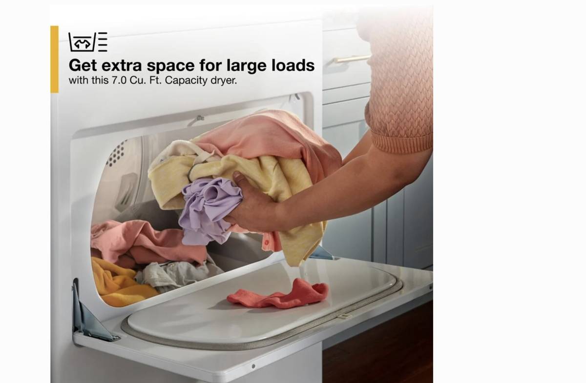 29 Inch Gas Dryer 7.0 cu. ft., Interior Light, 11 Dryer Programs, Moisture Sensing, Timed Dry, Wrinkle Shield, Air Only Cycle, Quick Dry, Static Reduce Option, End of Cycle Signal , White .