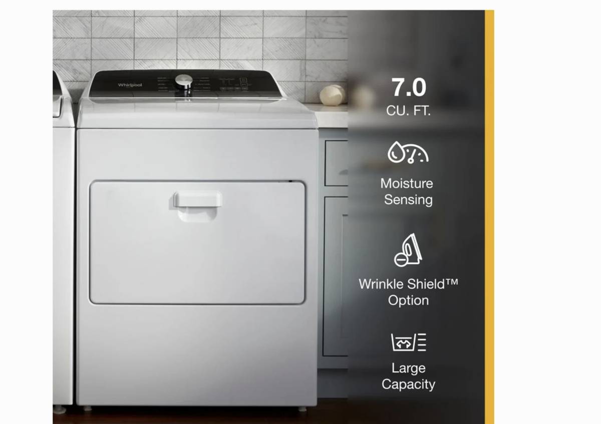 29 INCH Whirlpool WGD5010LW Gas Dryer 7.0 cu. * New Open Box * White Interior Light, 11 Dryer Programs, Moisture Sensing, Timed Dry, Wrinkle Shield, Air Only Cycle, Quick Dry, Static Reduce Option, End of Cycle Signal