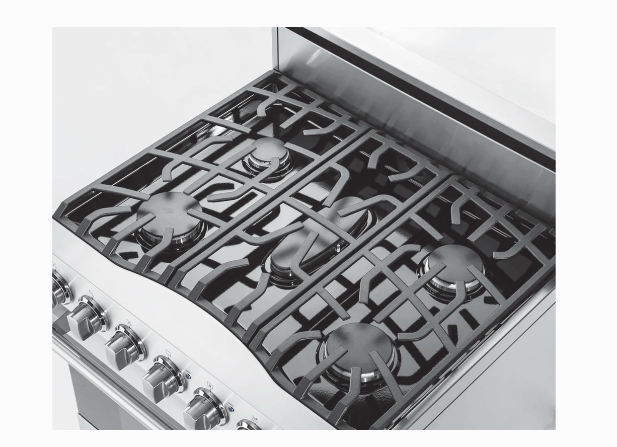 30 Inch Gas Range 5 Sealed Burners, 4 Cu. Ft., Continuous Grates,