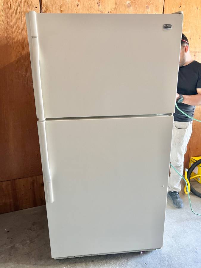 33 Inch Maytag Top Freezer Refrigerator , M1TXEMMWQ , ICE MAKER , Used Condition , OFF WHITE ,