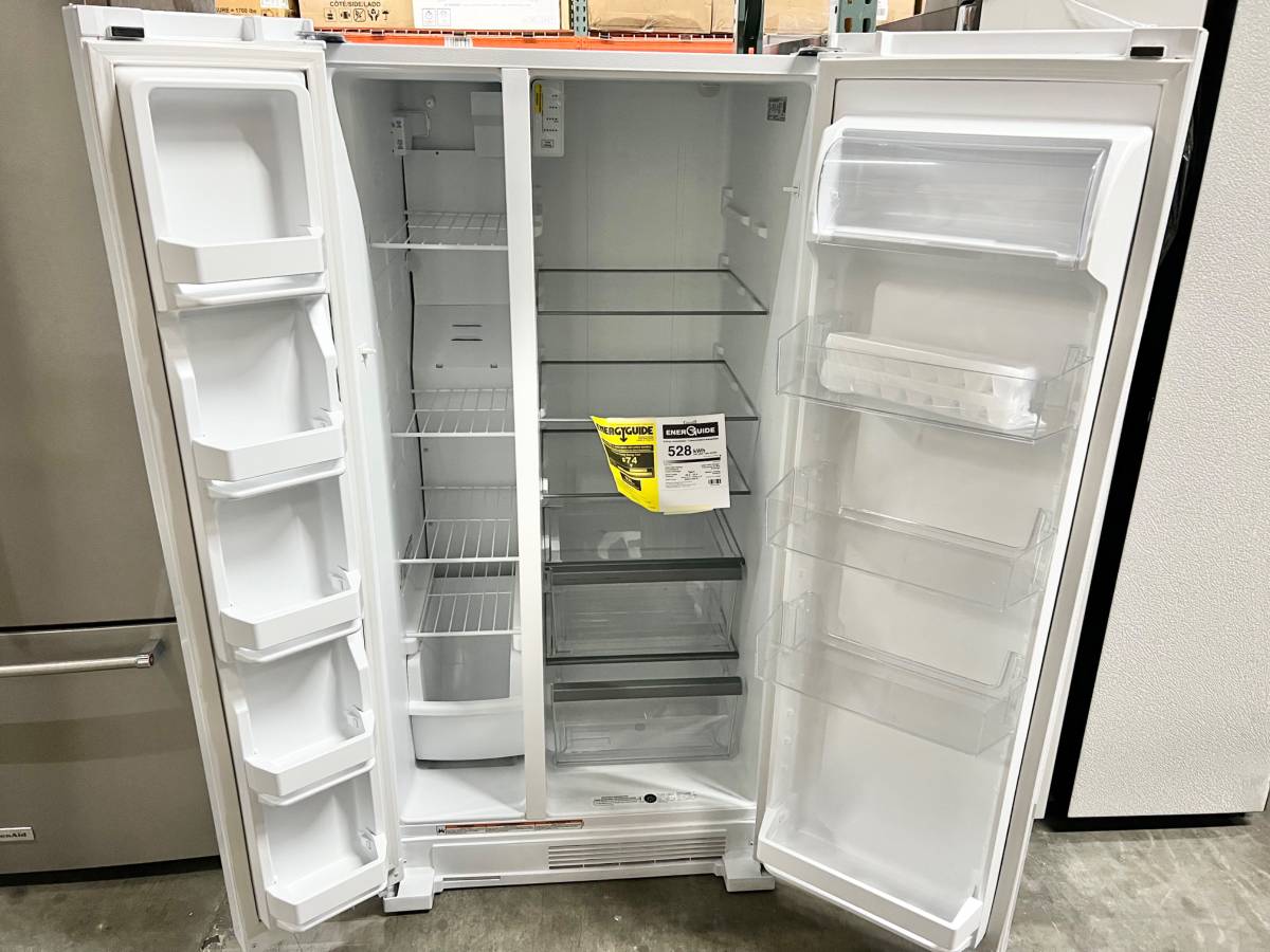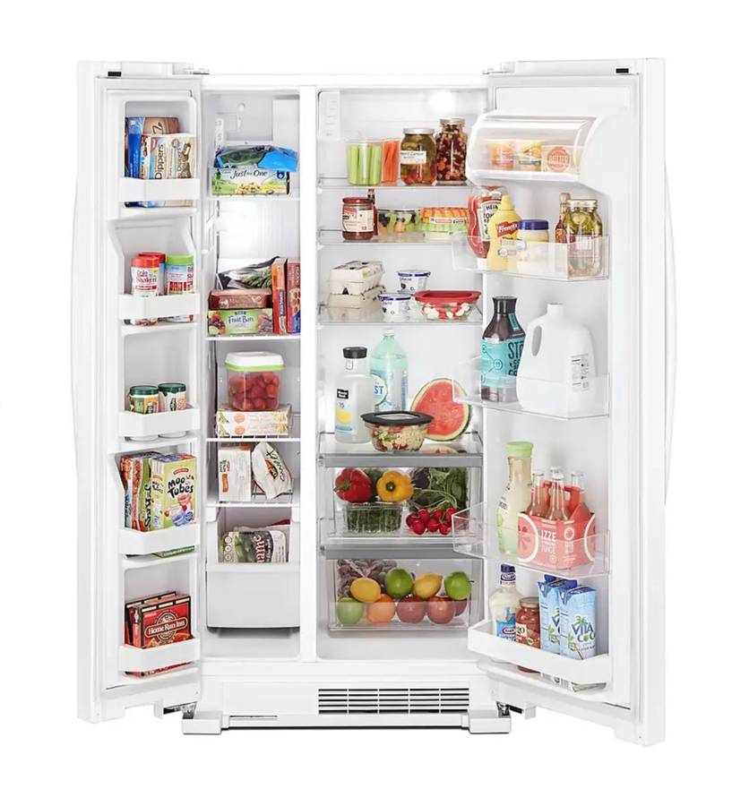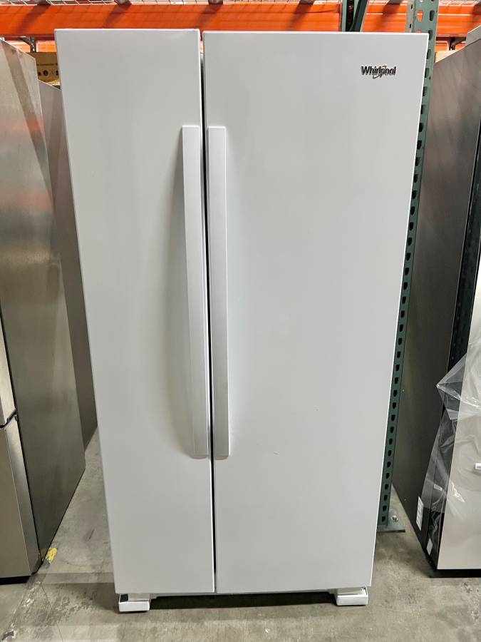 33 INCH Whirlpool WRS312SNHW Side by Side Refrigerator White * NEW * Freestanding 21.72 Cu. Ft. , Adjustable Gallon Door Bins, LED Interior Lighting, Hidden Hinges, Frameless Glass Shelves, Optional Icemaker, White .