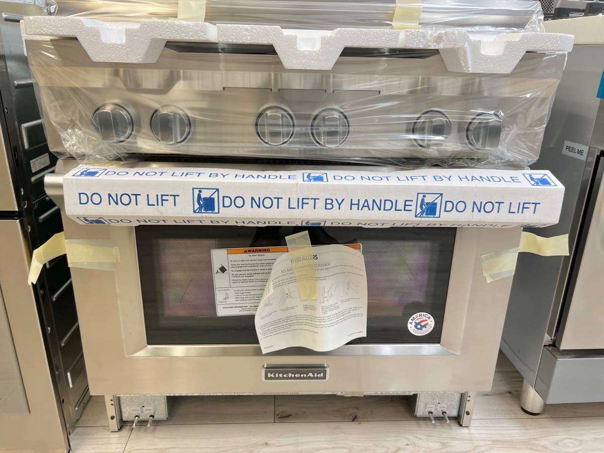 36 INCH Kitchenaid KDRS467VSS Dual Fuel Range * New Open Box * Stainless Steel , 6 Sealed Burners , Commercial Style , Continuous Grates , Hidden Bake Element, Proofing , Bread, Even Heat , 2 20k BTU Ultra Power Dual Flame Burners