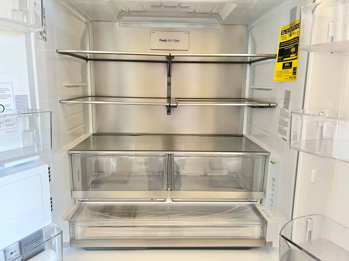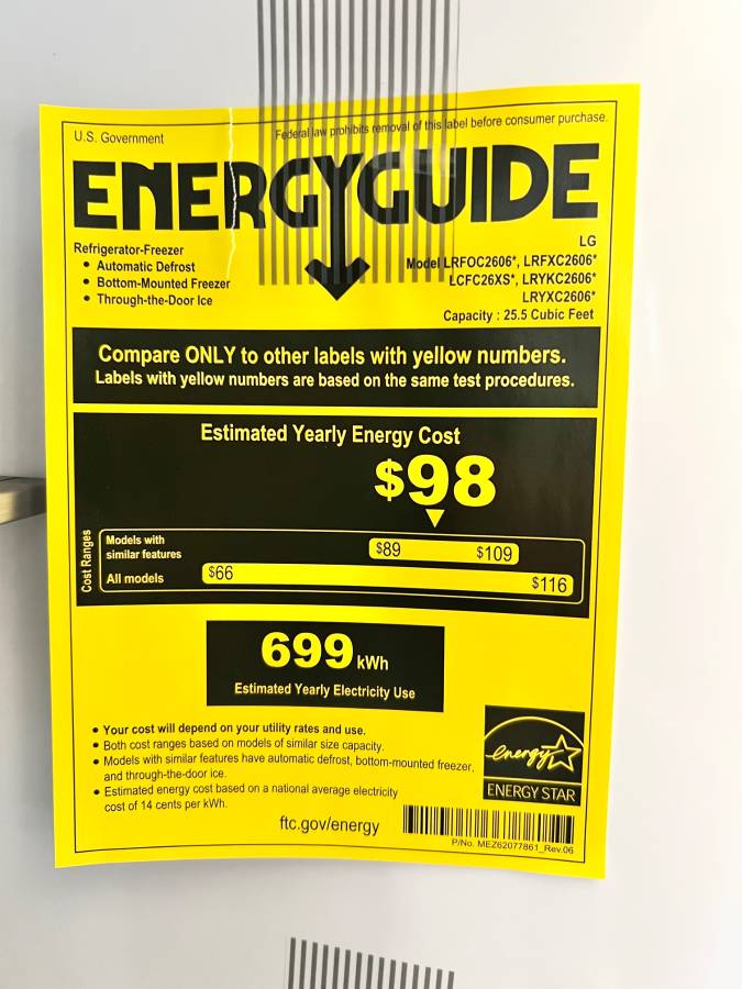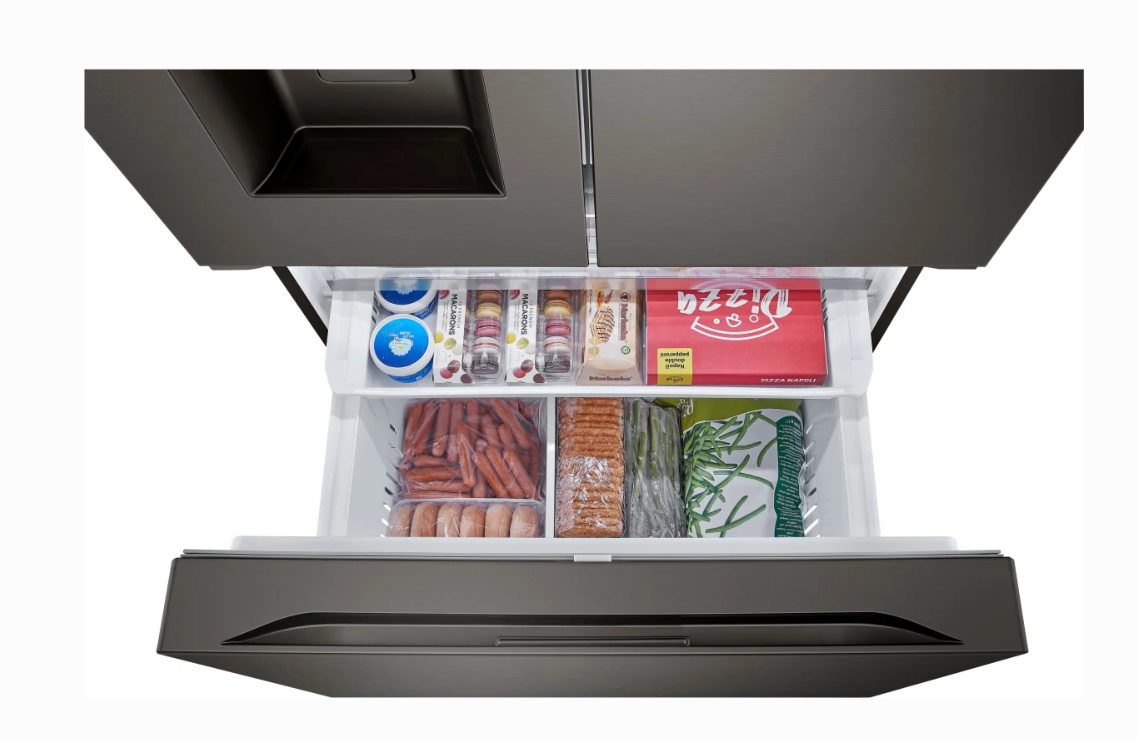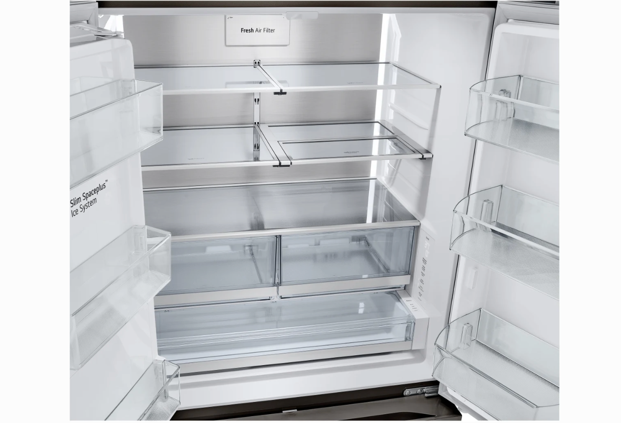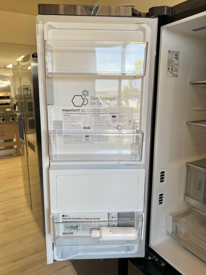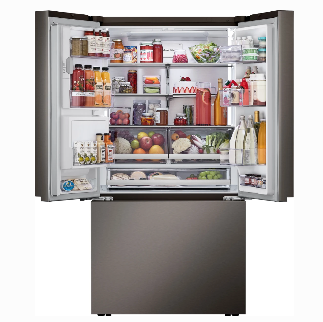 36 INCH LG LRYXC2606D Counter Depth MAX Freestanding French Door Smart Refrigerator , 26 Cu Ft , Cool Guard , Wi-Fi , Built In Ice Maker , UV Nano Dispenser Energy Star ADA Print Proof Black Stainless Steel