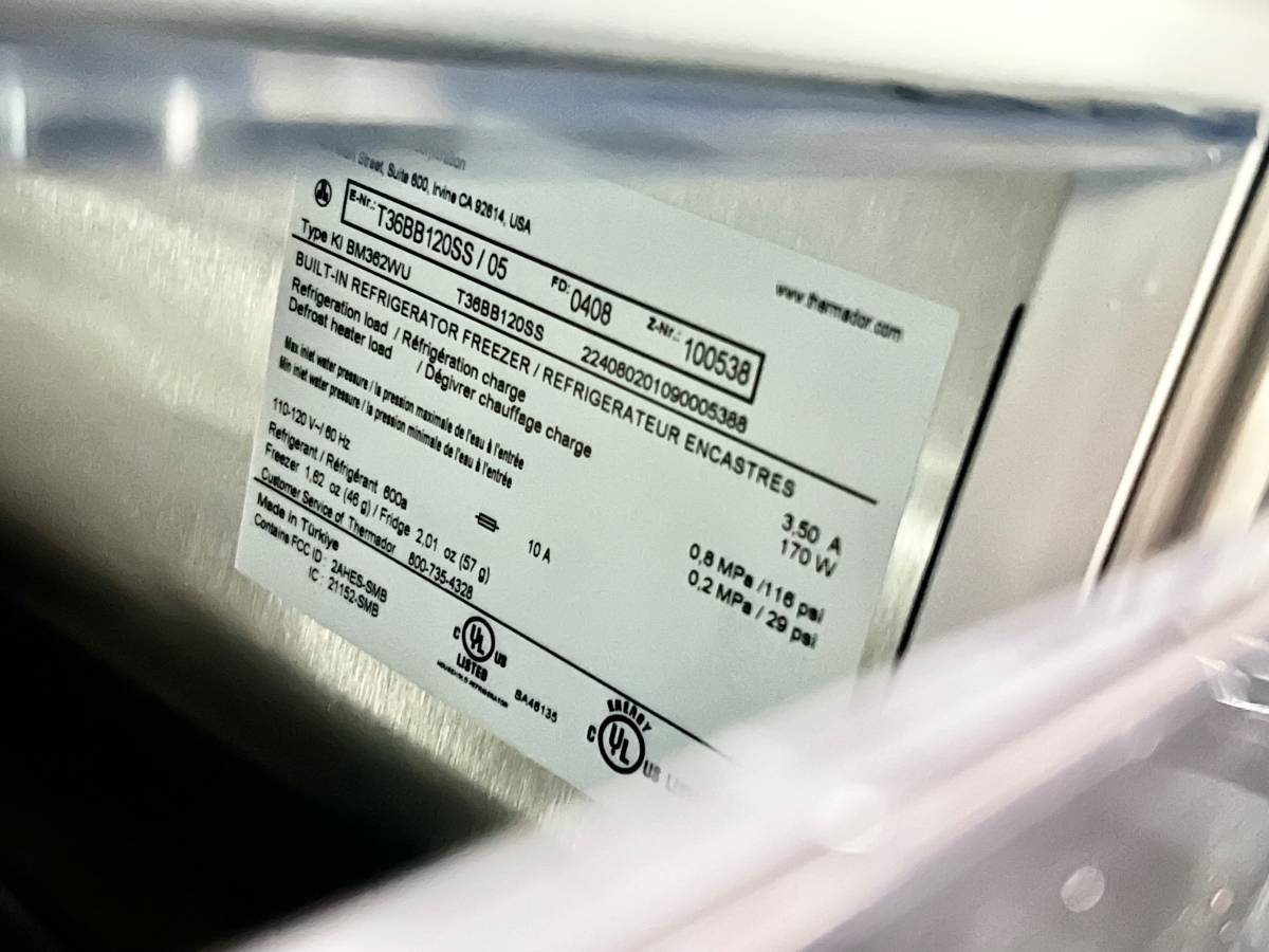 36 INCH Thermador T36BB120SS Built-In Bottom Mount Smart Refrigerator 19 cu. ft., Therma Flex Drawer, Internal Water Dispenser, and Ice Maker Professional Handle