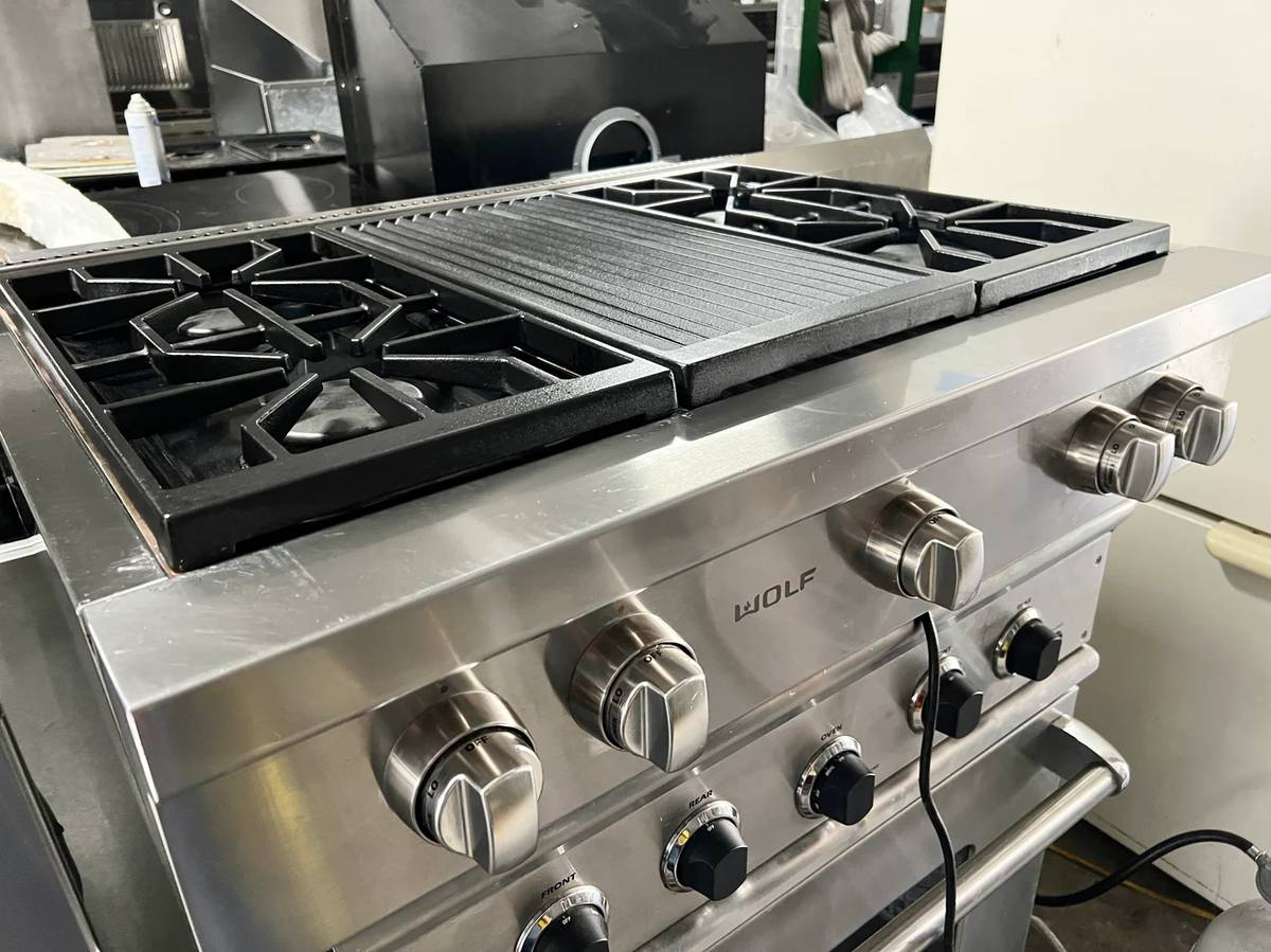 36 INCH Wolf SRT364C Gas Rangetop 4 Burner with Grill in Stainless Steel , Used Condition