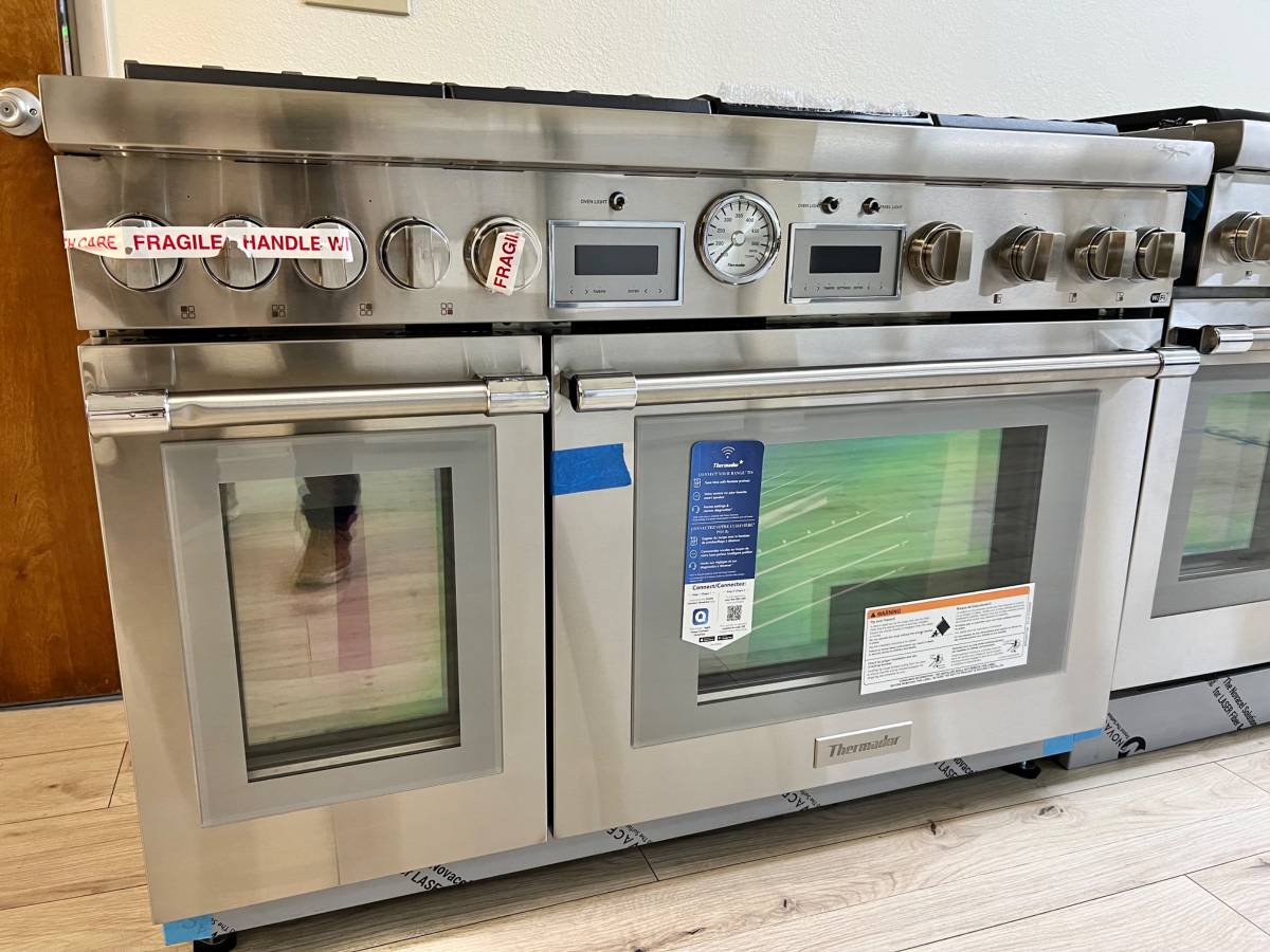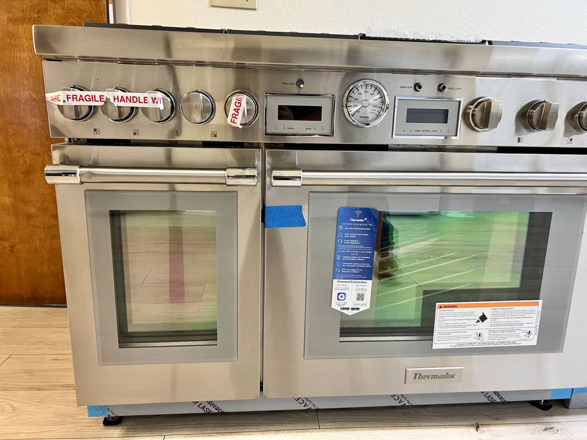 48 INCH Thermador PRG486WDG Range 6 Burner Convection Oven , ALL GAS * New Open Box Freestanding Natural Gas Range 6 Sealed Burners , Double Oven , Self-Clean, Non-Stick Griddle Stainless Steel