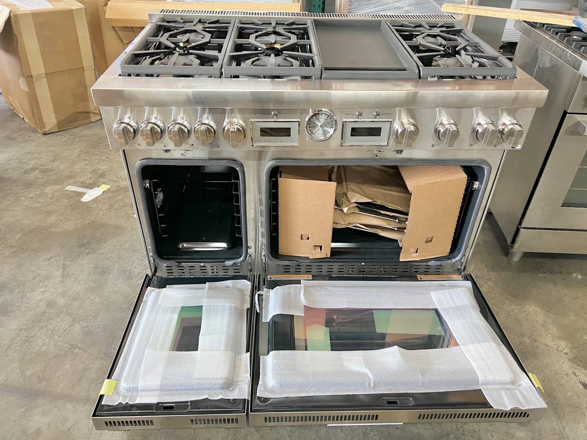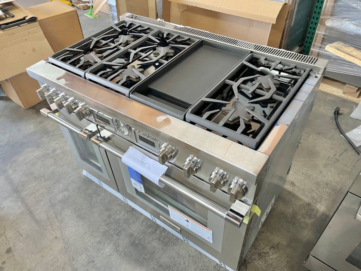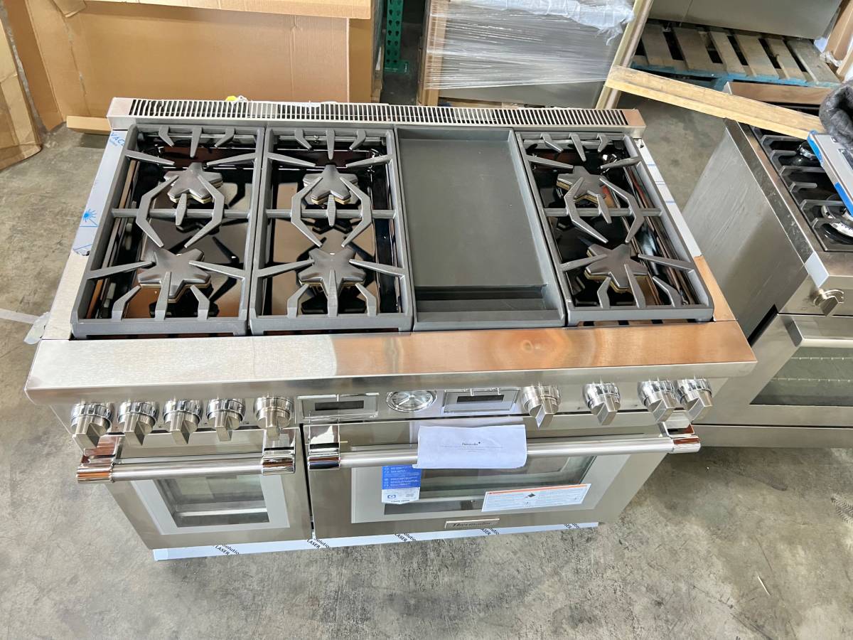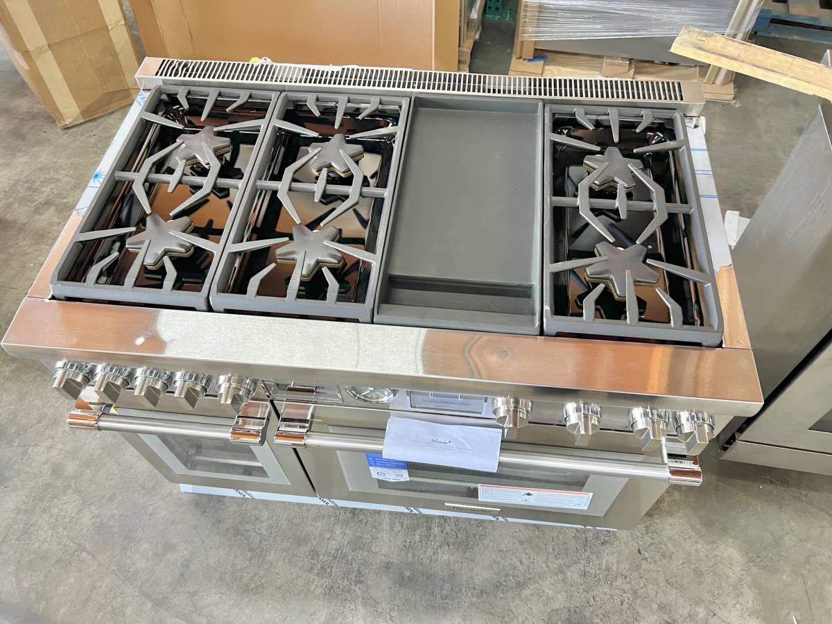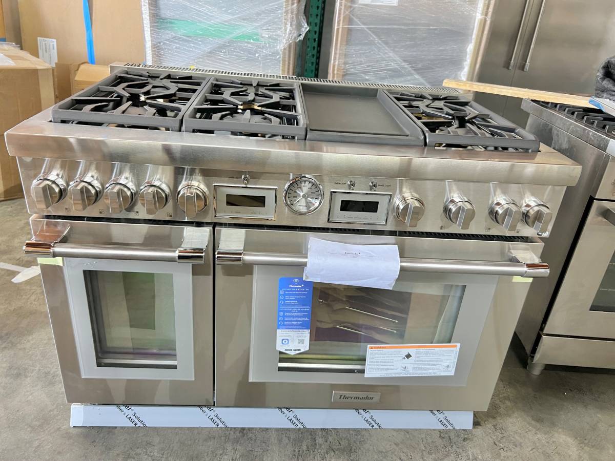 48 INCH Thermador Pro Grand Professional Series PRG486WDG * NEW * 6 Sealed Burners, Double Oven, 8.2 cu. ft. Total Capacity, Continuous Grates, Self-Clean, Non-Stick Griddle , Stainless Steel