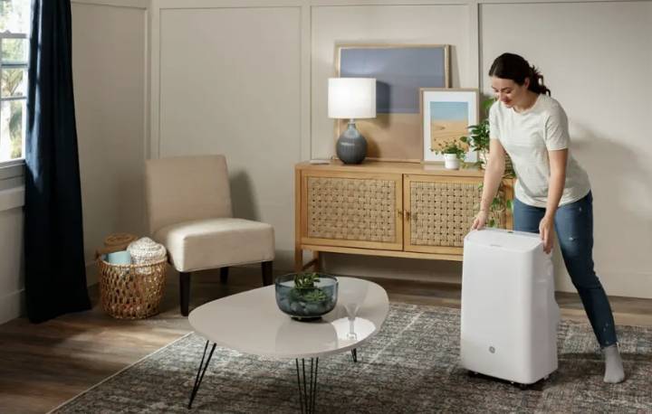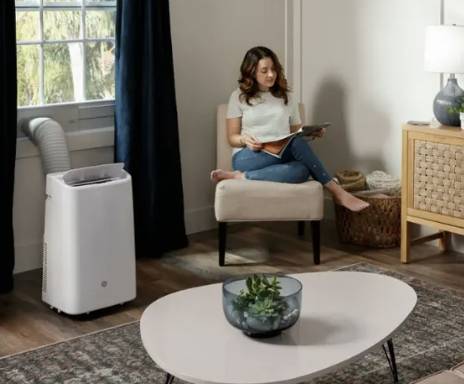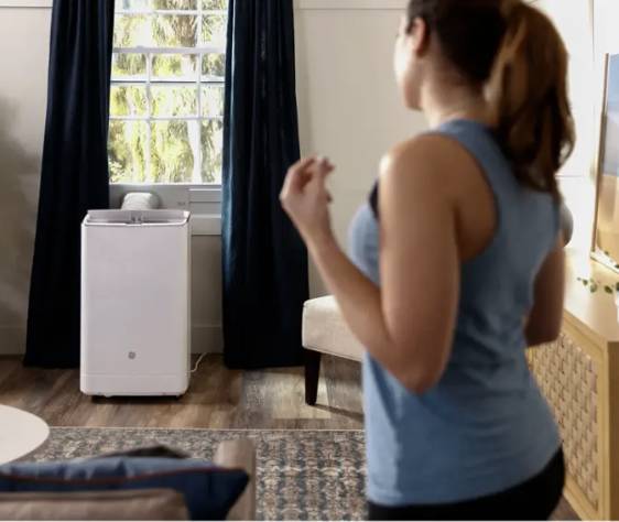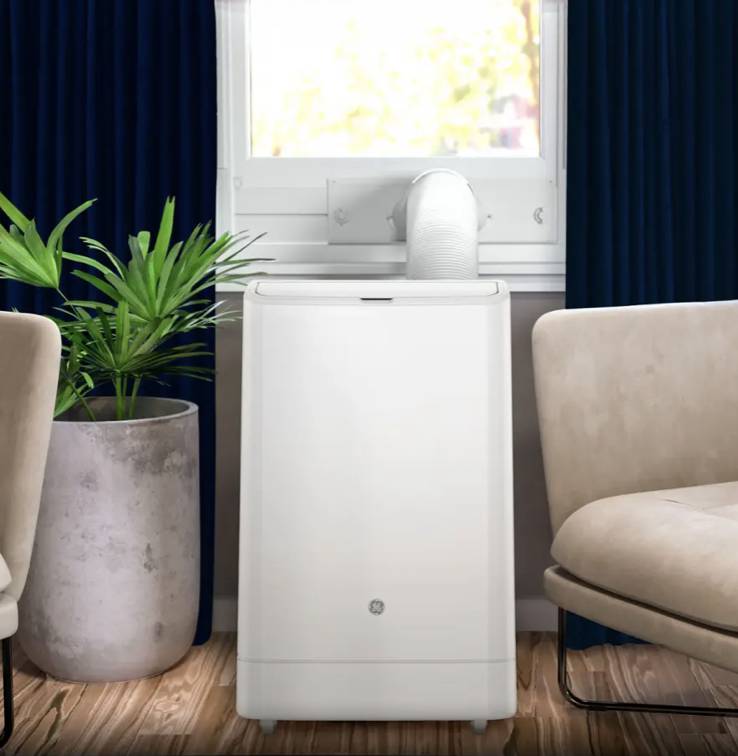 GE 450 Sq. Ft. 10,400 BTU Smart Portable Air Conditioner White * New Open Box * 3 in 1 Portable Air , Wi-Fi , Auto Evaporation , Remote Control , LED Controls , 24 Hr Timer , Continuous Fan , Window Installation Kit ,