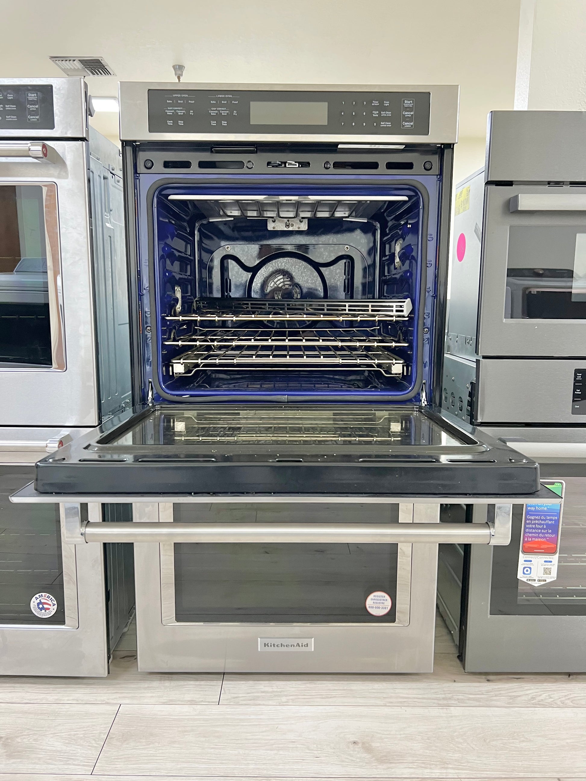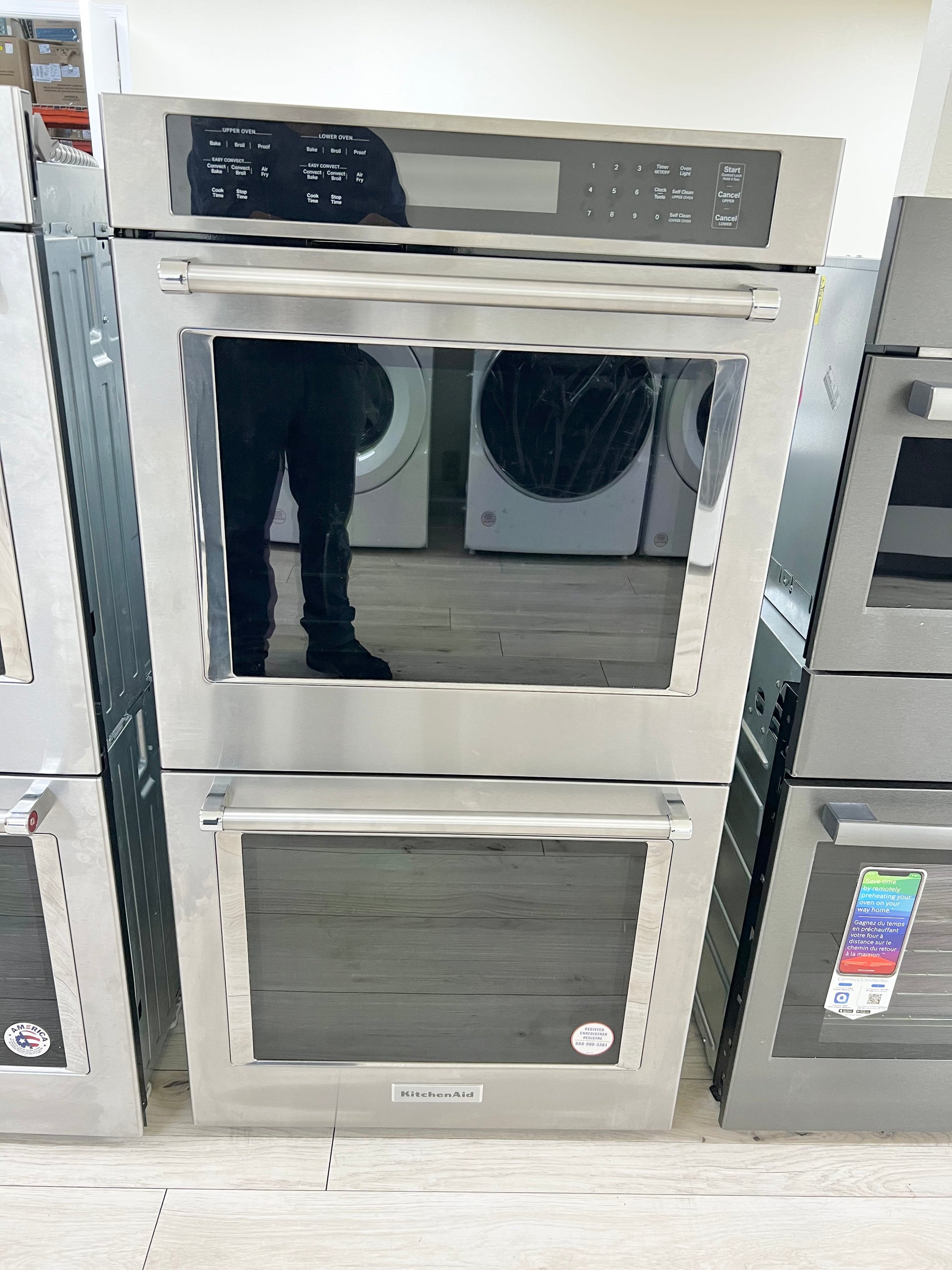 27 INCH KitchenAid KOED527PSS Double Electric Wall Oven 8.6 Cu. Ft. Total Oven Capacity, Air Fry, Even-Heat True Convection, Preheat, Integrated Meat Thermometer, Self-Close Doors, Self-Cleaning, Sabbath Star-K Stainless Steel * New Open Box *