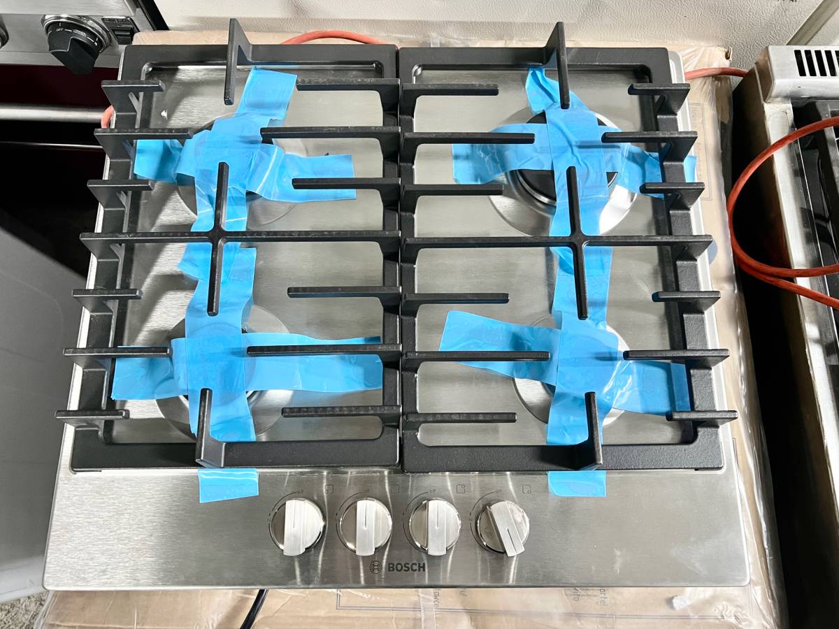 24 INCH Bosch 500 Series NGM5458UC Gas Cooktop * New Open Box * 4 Sealed Burners, Continuous Cast Iron Grates, Heavy-Duty Stainless-look Metal Knobs, One-Piece Stainless Steel Design, and ADA Compliant
