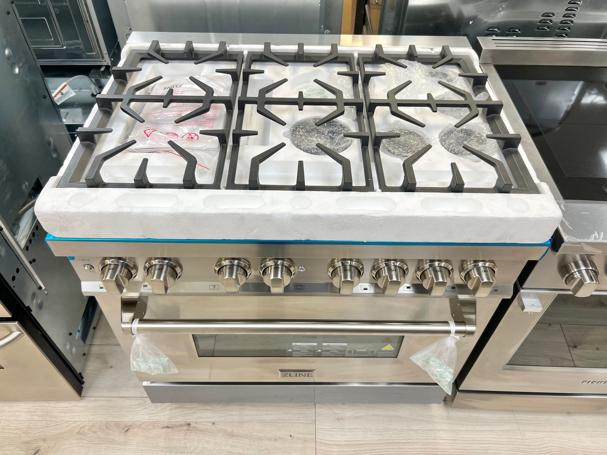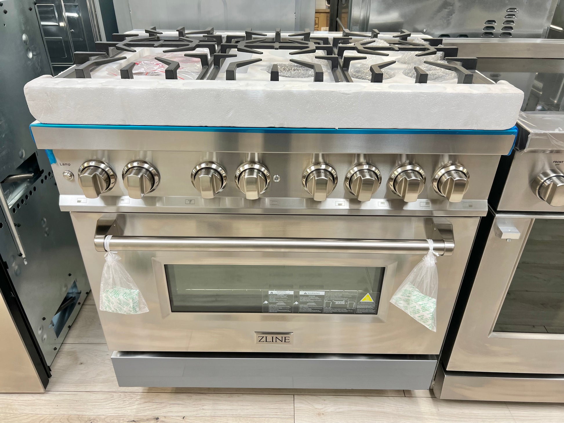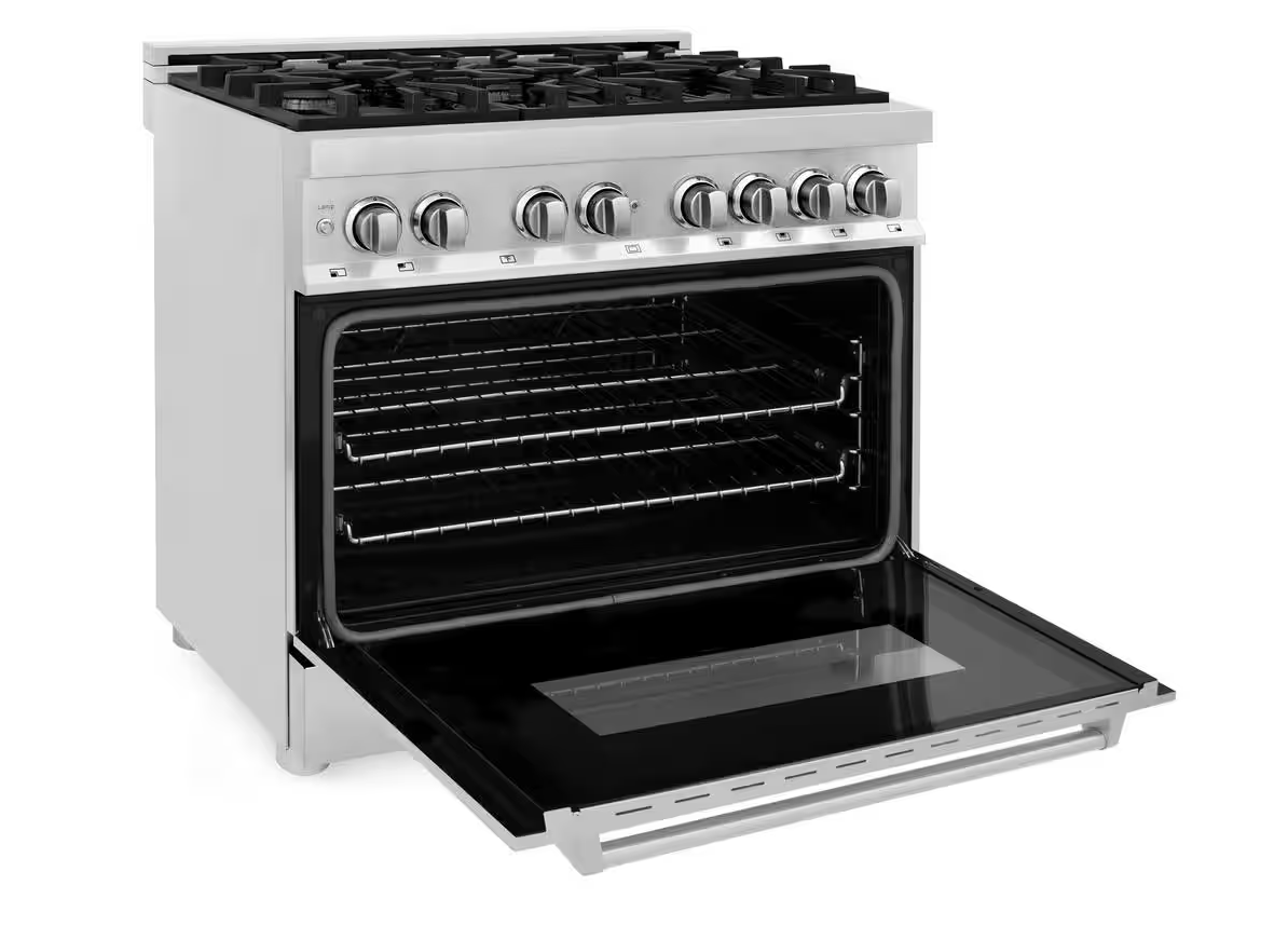 36 INCH ZLINE RA36 Freestanding Dual Fuel Gas Range 6 Sealed Italian Burners, 4.6 cu. ft. Oven Continuous Grates, Convection,Smooth Glide Racks, Porcelain Cooktop,Stainless Steel * New Open Box *